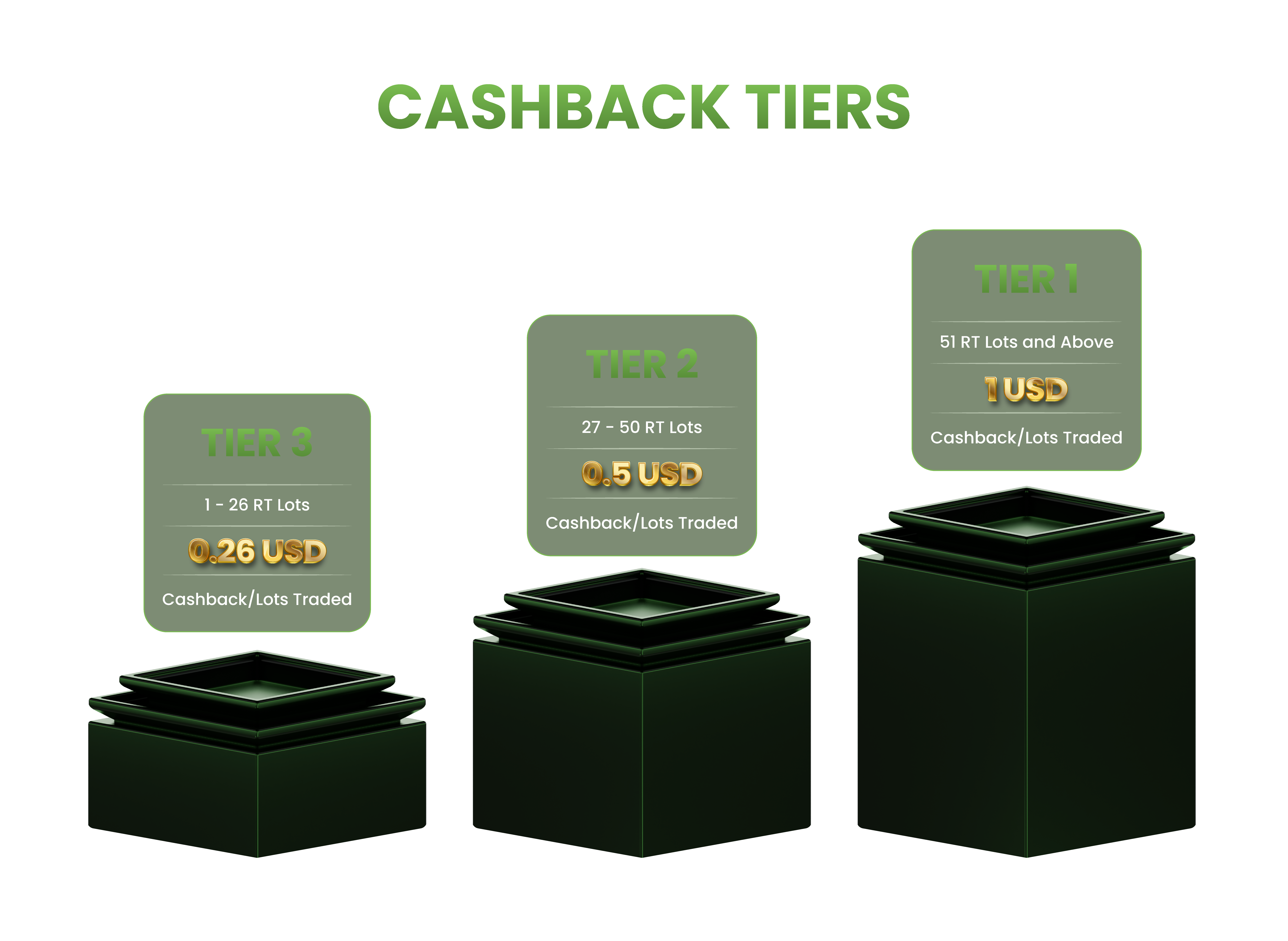 Clients will receive cashback based on the highest tier they achieve, and the final cashback rate will apply to all eligible RT Lots traded during the promo period.